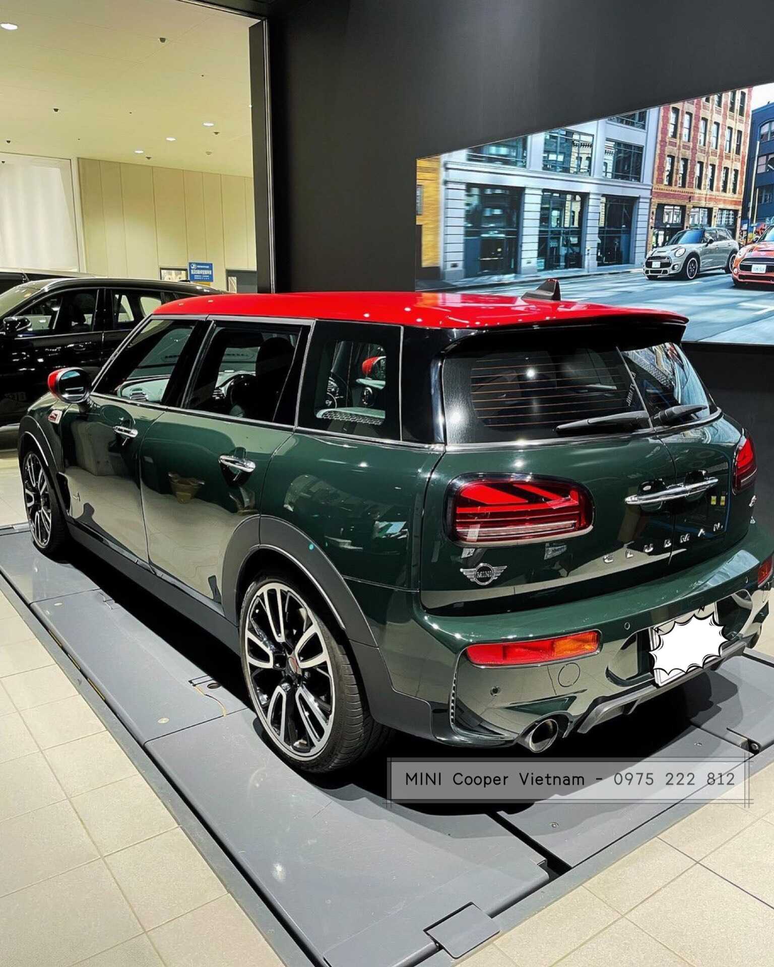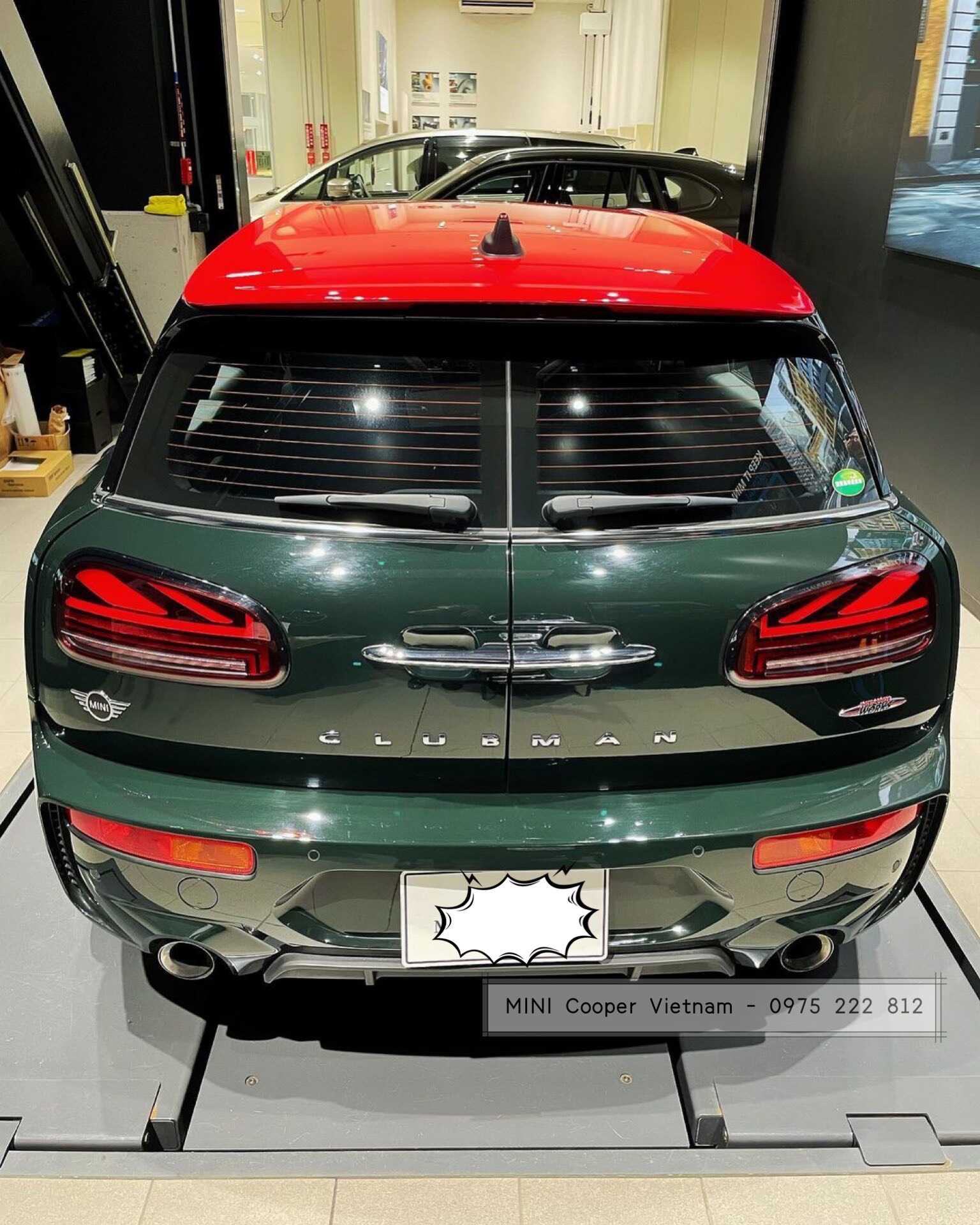 Quan sát từ phía sau xe, màu xanh lá đậm được kết hợp với phần nóc xe màu đỏ cờ nổi bật tạo sự tương phản, tạo nên điểm nhấn cực kỳ khác biệt với tất cả những mẫu xe sang khác. Thiết kế cốp mở 2 cánh độc nhất vô nhị là đặc điểm không lẫn được của MINI Clubman.