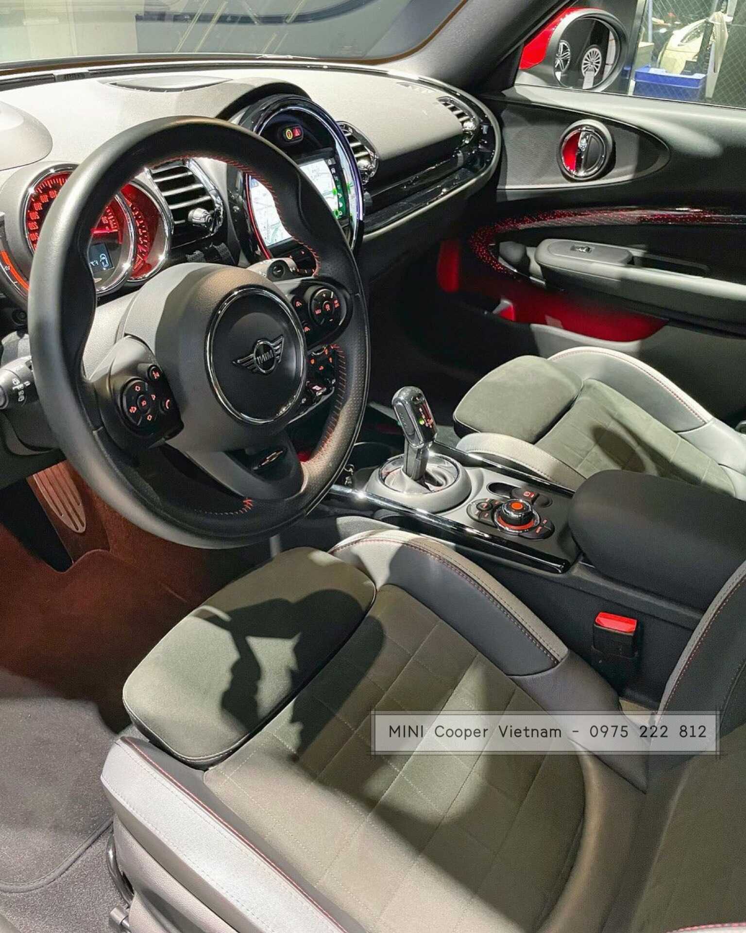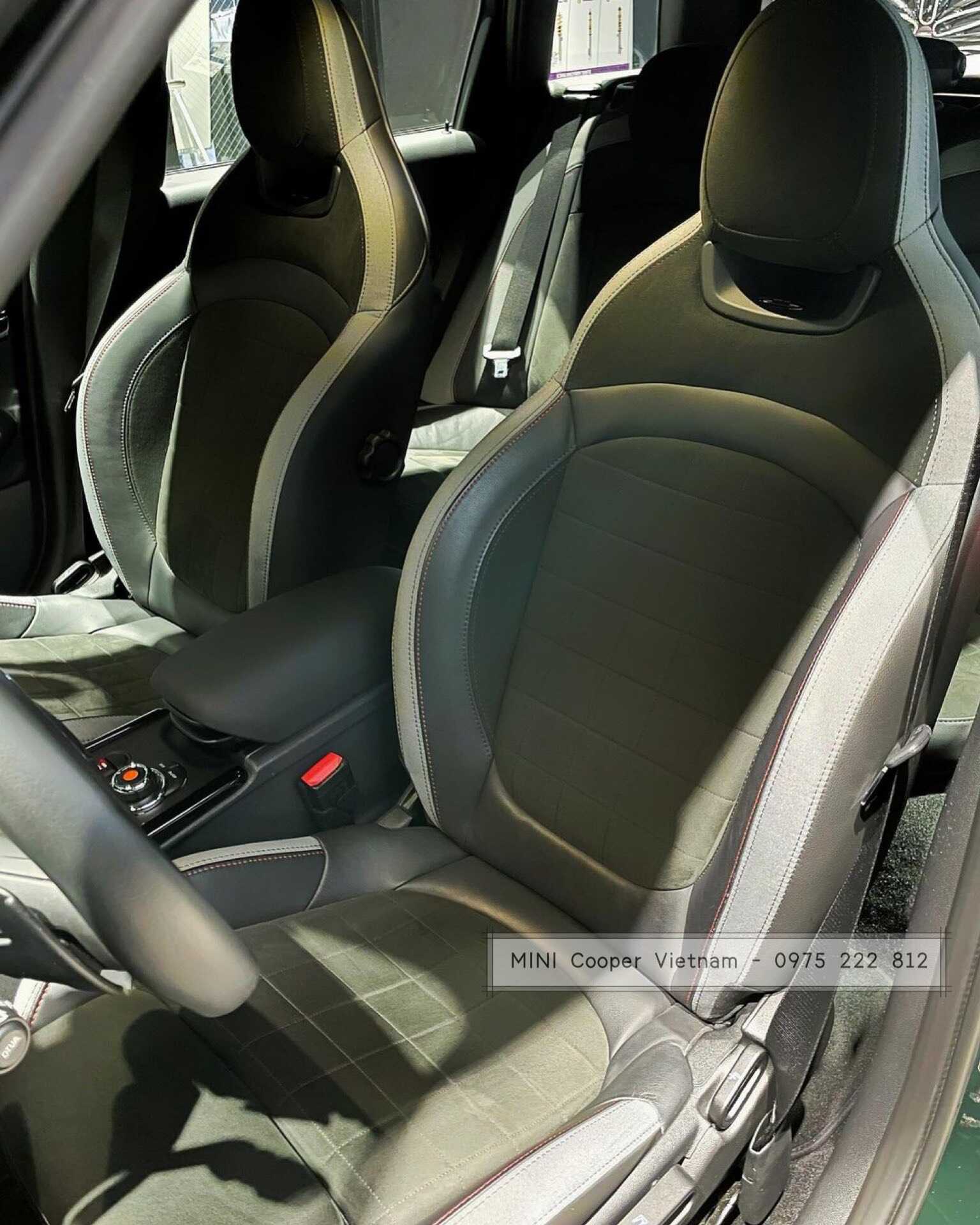 Vẫn là những nét thể thao từ ngoài vào trong, nội thất bọc da lộn toàn bộ như các phiên bản siêu xe. Thiết kế ghế thể thao ôm sát cơ thể. Màn hình giải trí trung tâm kích thước 8.8inch cảm ứng tích hợp Apple Carplay không dây. Bên trong xe được trang bị hệ thống đèn viền nội thất 12 màu sắc cá tính. Vô lăng 3 chấu thể thao cùng logo John Cooper Works đồng bộ giữa vô lăng và màn hình hiển thị thông số.