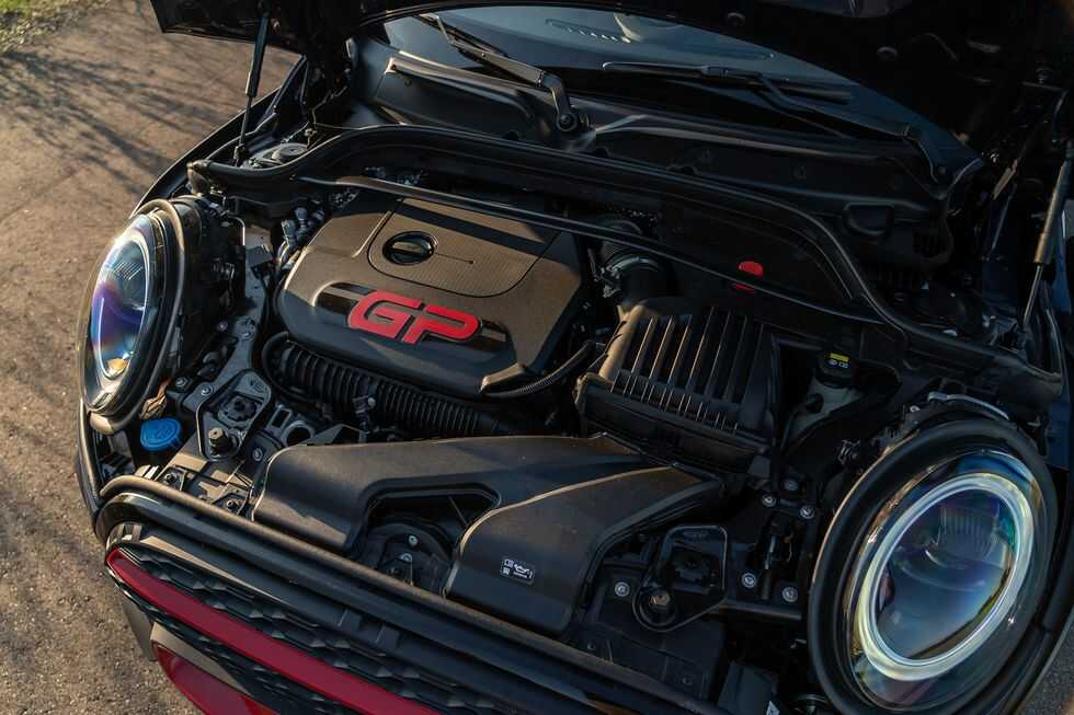Động cơ bốn xi-lanh tăng áp của MINI Cooper JCW GP có công suất 302 mã lực, nhiều hơn 74 mã lực so với JCW tiêu chuẩn. Mẫu GP cũng có khung gầm thấp hơn và có nhiều yếu tố khí động học hơn, với một cánh gió sau lớn được bắt chặt vào phần sau. MINI John Cooper Works GP cũng có hệ thống xả lớn hơn và hệ thống treo được sửa đổi. Hiện có thể đặt hàng mui cứng JCW thông thường với hộp số tay sáu cấp; hộp số tự động 8 cấp là hộp số duy nhất có sẵn cho các mẫu MINI GP và MINI mui trần.